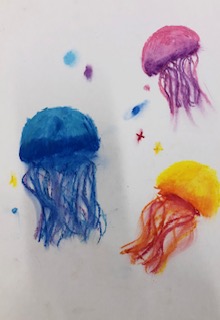 水彩絵具で淡い色の移り変わりを上手に表現できました。