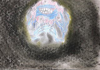 キャンバスにアクリル絵具。色もいい。想像力もいい。